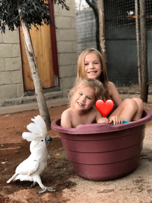 D: “There were so many funny and wonderful experiences that we had as a family. One of my favourite memories was of my children having a bath in a wash tub while the resident zebra drank the water while they were still in it, and Marlin the cockatoo chatting away at them at the same time!