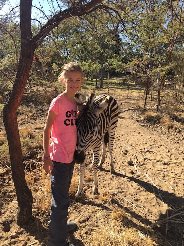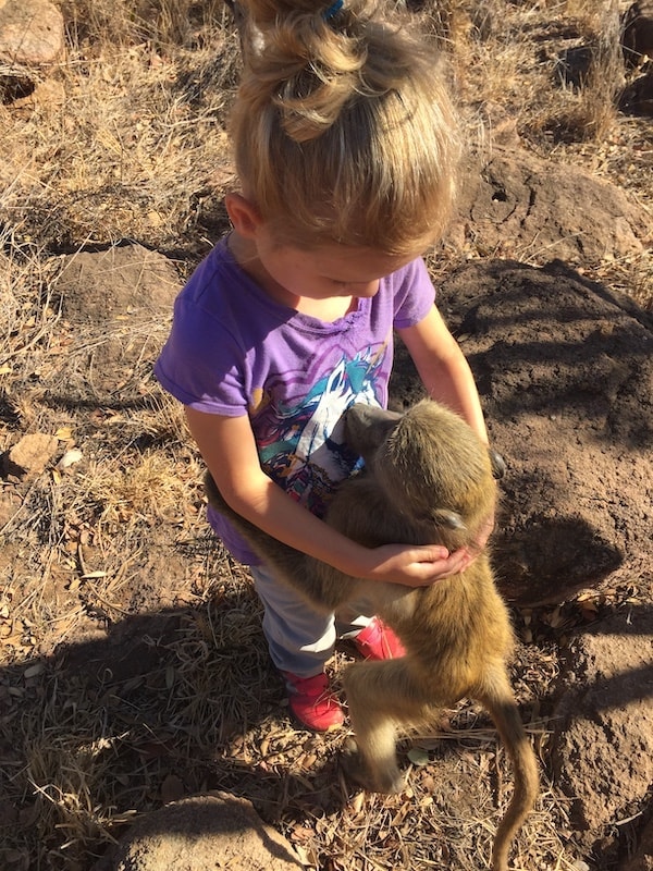 D: “There are so many funny moments we took away from the experience! Like bathing my kids in a wash tub with City Boy the zebra drinking the water while they were still in it. Or Marlin the cockatoo chatting away to us all day. Or Coconut, the warthog getting into everything! Or sitting around the fire in the evening, listening to my children talk about their day and telling me they never want to leave. Or watching baboons jump all over my children while they just take it in their stride!